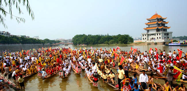 The exciting activity of Dragon Boat festival is the dragons boat race. Competing teams drive their colorful dragon boats tooth and nail along with the rhyhm of beating drums attepts to resue Qu Yuan from the river.