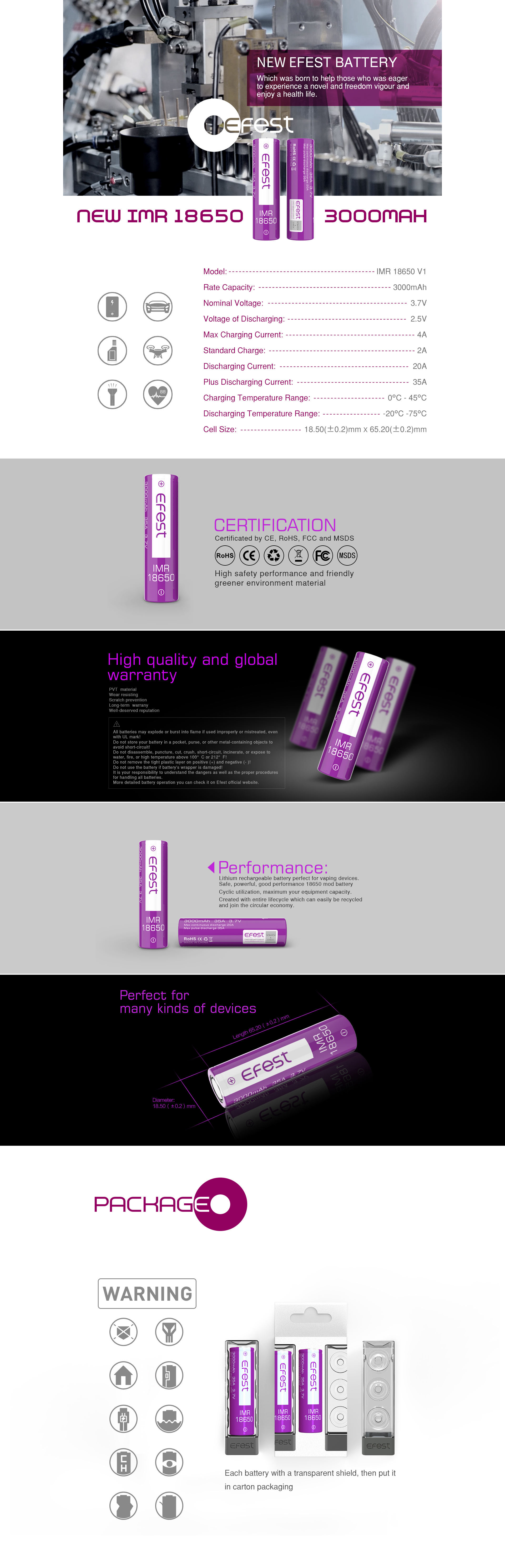 NEW EFEST IMR 18650 3000mAh Purple Battery